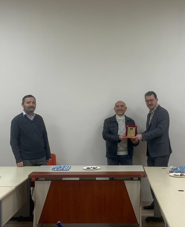 Bölüm başkanlığı görevini üstlenen Doç. Dr. Ömer Baykal, Prof. Dr. Mahmut Bozan'a bölümümüze yaptığı katkılardan dolayı şükranlarını sunmuş ve günün anısına plaket vermiştir.